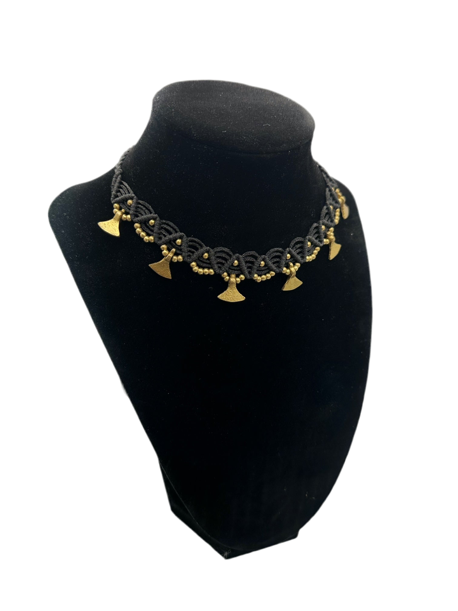 This macrame choker combines intricate craftsmanship with contemporary design. Made from high-quality, durable waxed cotton thread, it features a unique knotting technique with brass beads. The adjustable closure ensures a comfortable fit for various neck sizes. Perfect for both casual and formal occasions, this choker enhances any outfit with its bohemian charm and elegance.