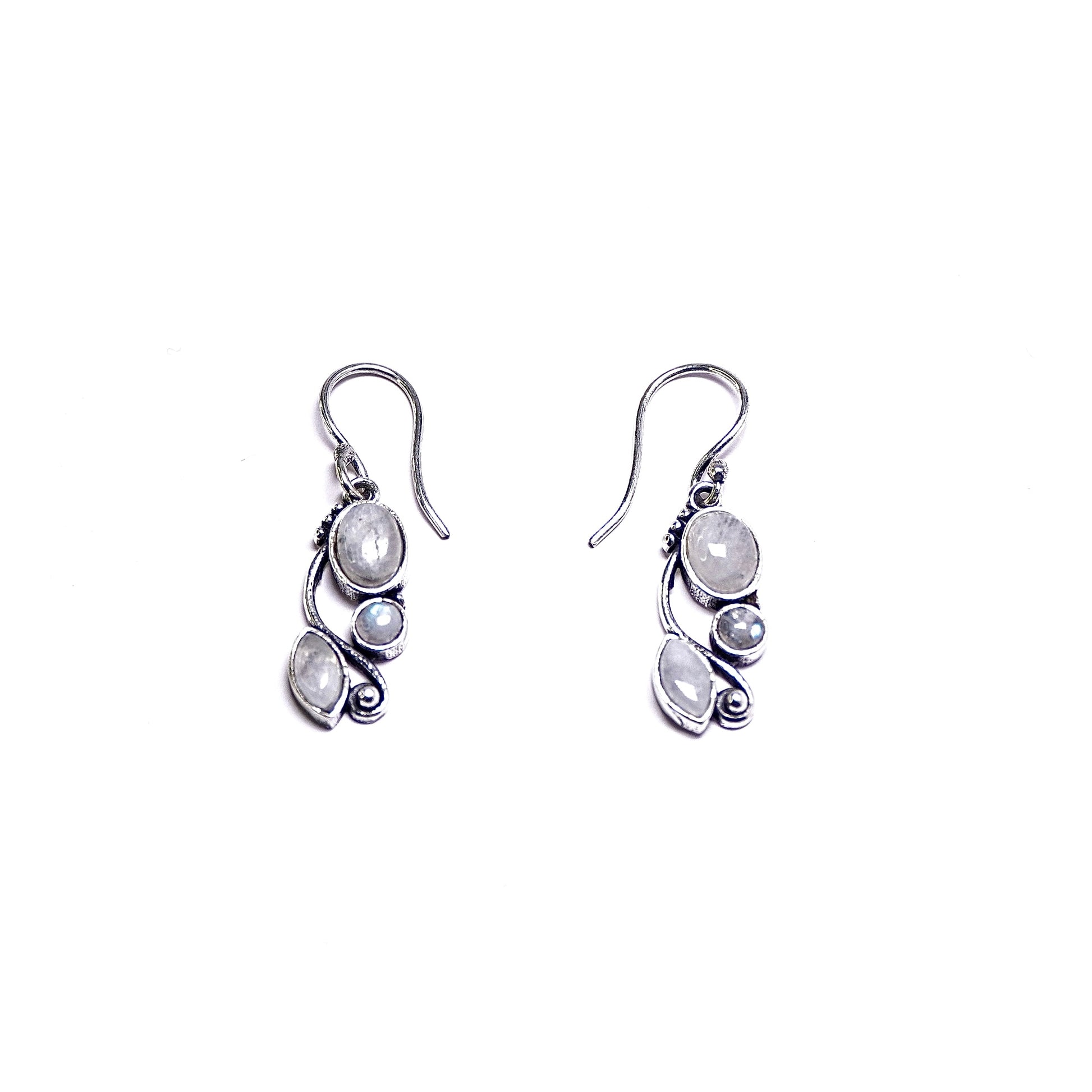Triple Moonstone Vine Drop Earrings